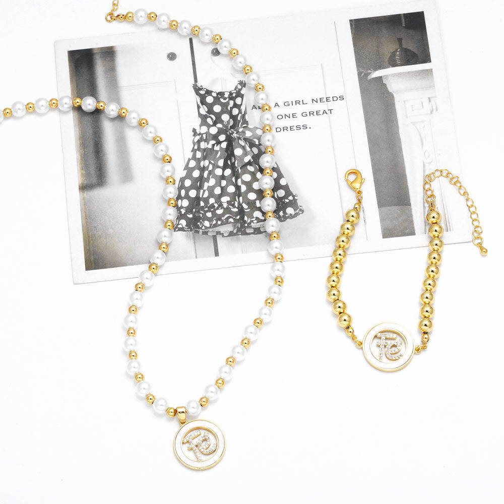 como joias europeias e americanas novo colar de pérolas feminino banhado a cobre 18k ouro incrustado zircão pulseira colar nkq26