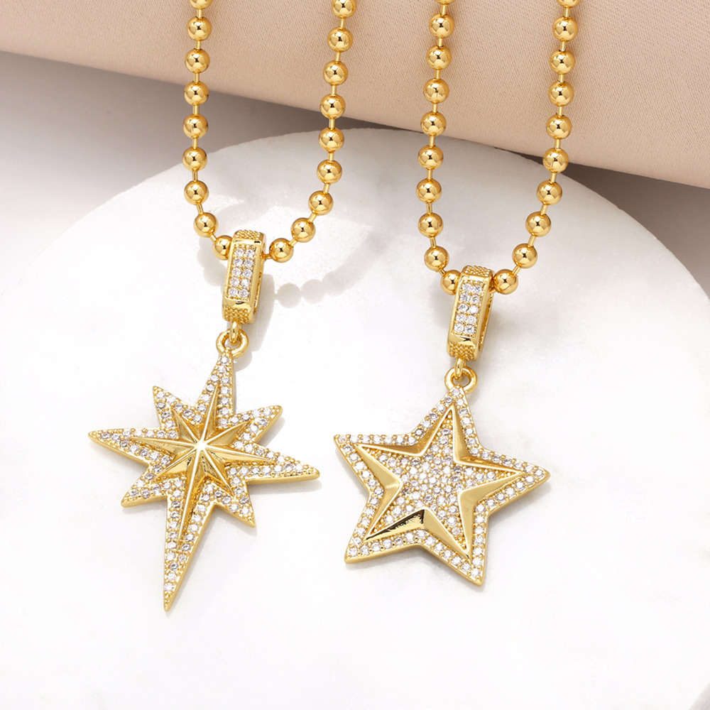 como joias europeias e americanas novo colar com pingente de estrela de cinco pontas banhado a ouro zircônia estrela de seis pontas corrente de clavícula nkp61