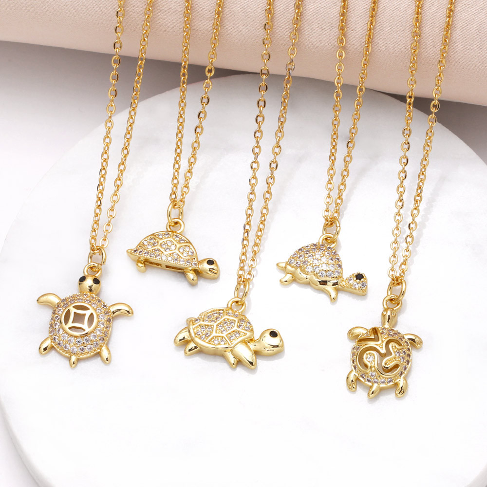 Colar com pingente de tartaruga banhado a cobre, corrente de clavícula com zircônias 18k, joias em liquidação nkn33