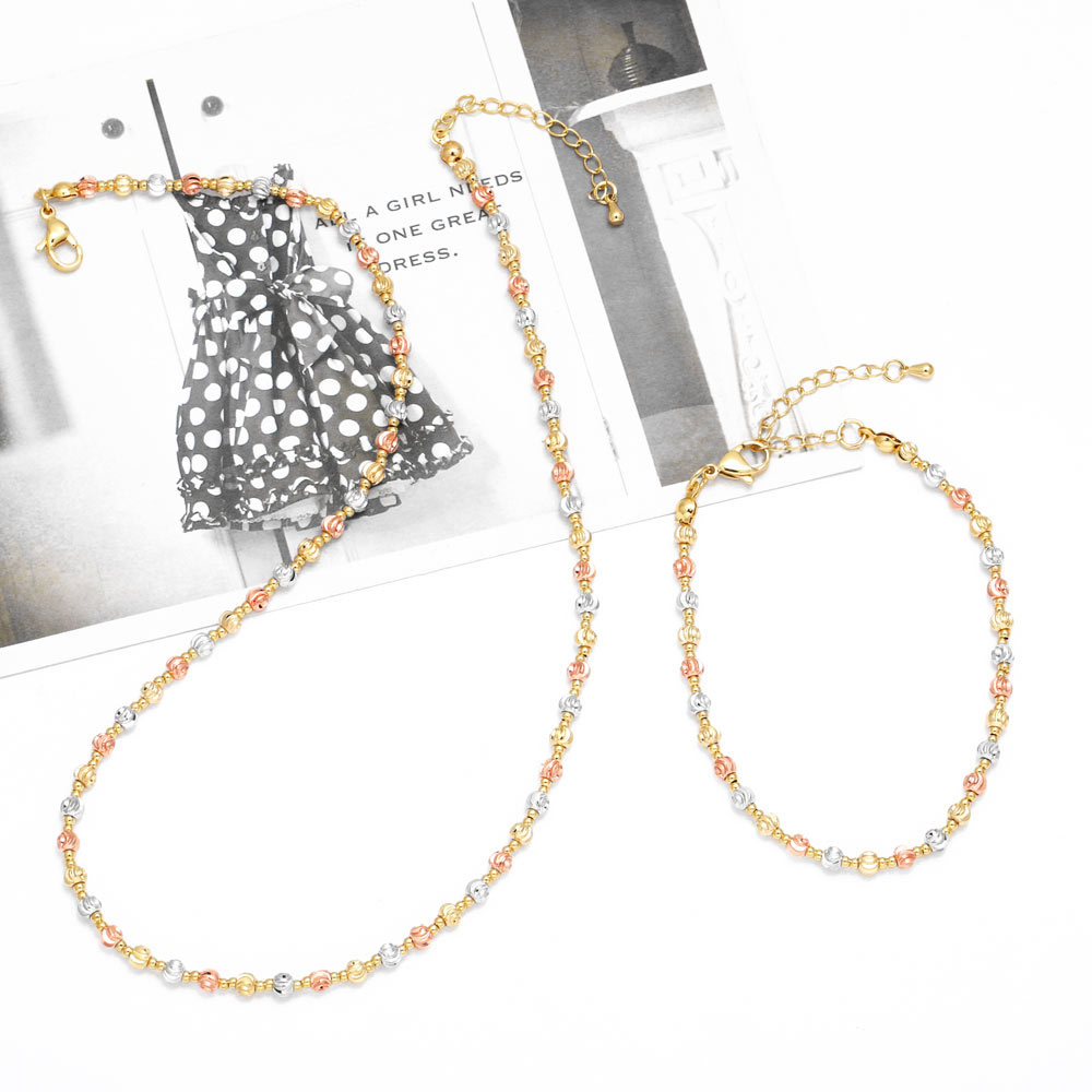 como joia colar de contas redondas lisas banhado a cobre ouro 18k incrustado zircão corrente de clavícula hip hop nky80