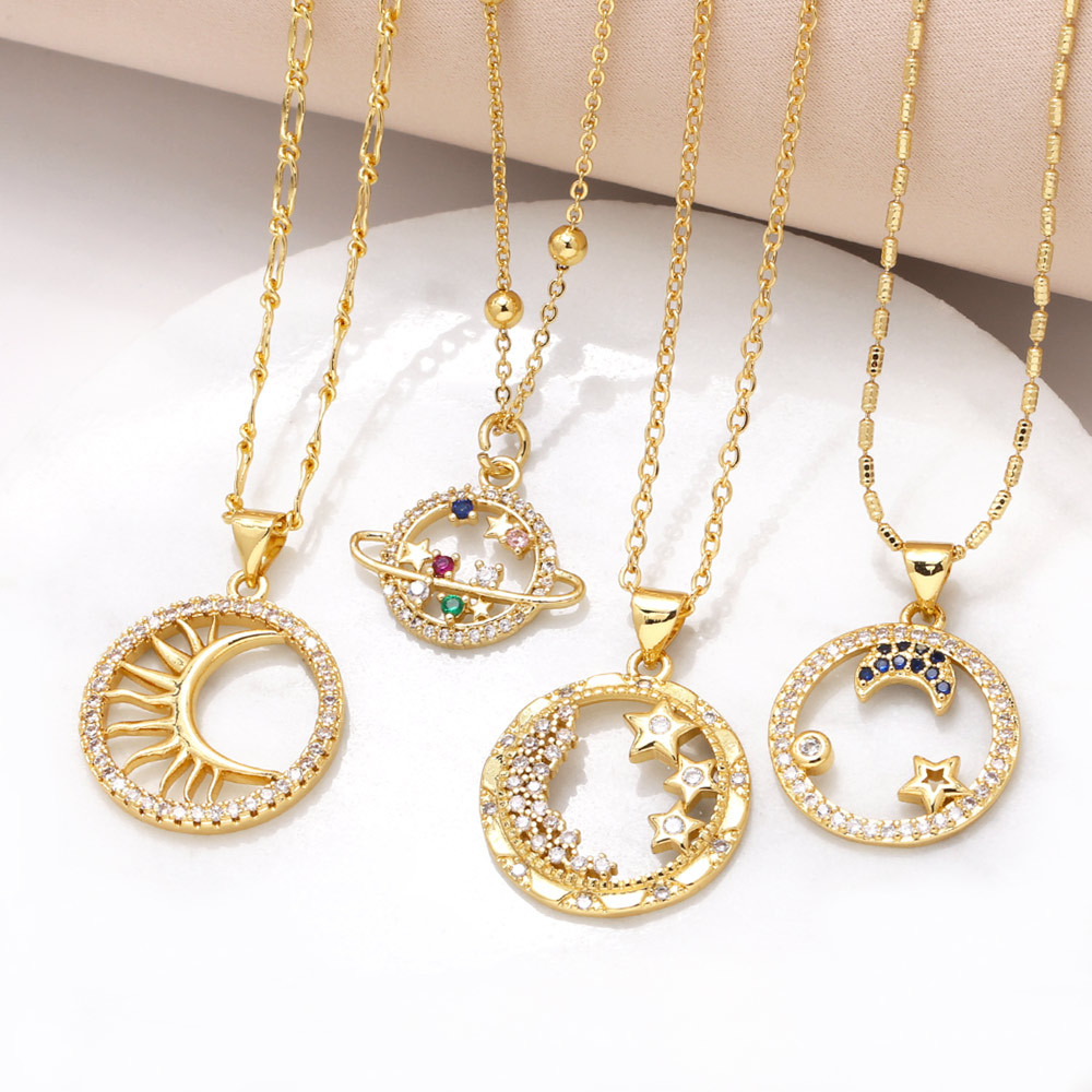 como joia mais vendida colar estrela lua feminino banhado a ouro zircônia corrente clavícula nkb227