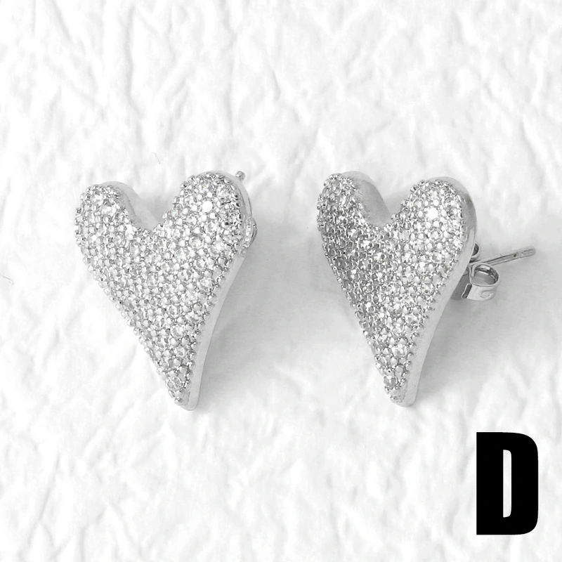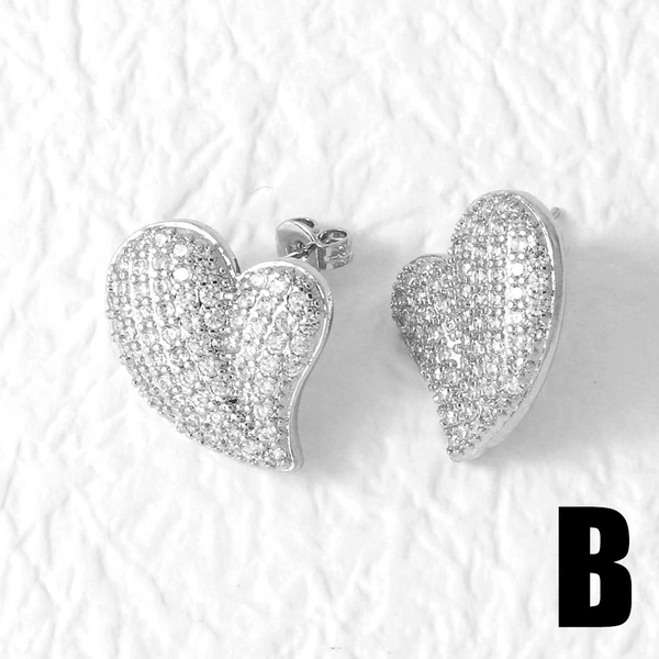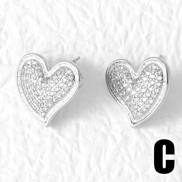 Brincos de alta qualidade para serviços pesados, totalmente incrustados, luxuosos brincos de coração em forma de C, brincos de moda europeus e americanos
