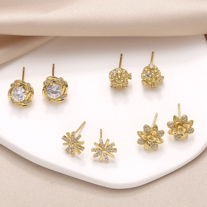 como brincos de joias europa e estados unidos brincos de flores mais vendidos brincos femininos de zircônia banhados a ouro brincos err36