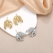 Brincos grandes em formato de C retro europeus e americanos, brincos de flores com ramos de metal, temperamento retro, orelha de bordo bicolor