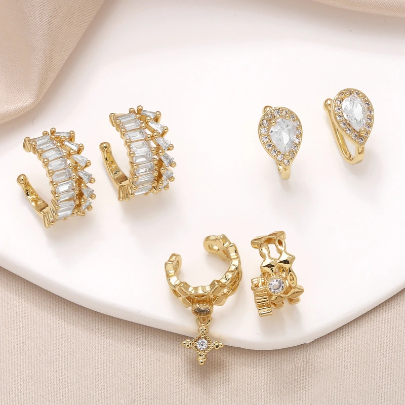 como brincos de orelha em formato de c femininos banhados a ouro zircônia estrela clipe de osso de orelha ery69