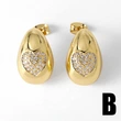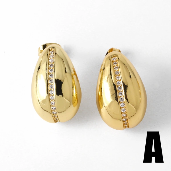 Brincos coreanos elegantes de temperamento antigo, misture e combine brincos ovais com microincrustações de zircónias brilhantes, vendas diretas da fábrica