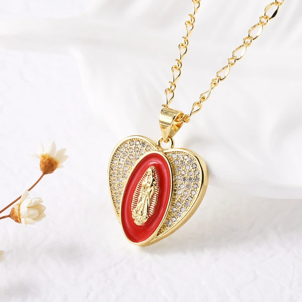 como joia mais vendida banhada a óleo banhada a ouro amor virgem maria colar corrente de clavícula nkb187