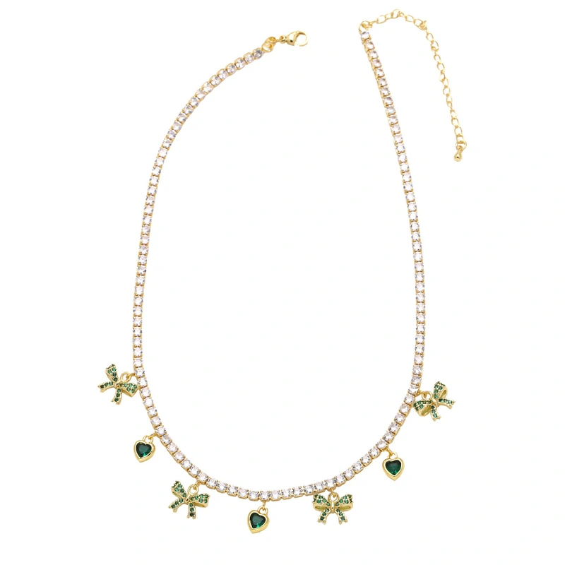Corrente de clavícula com zircónia incrustada, pendente popular de trevo de quatro folhas, colar coreano de temperamento sofisticado para mulheres