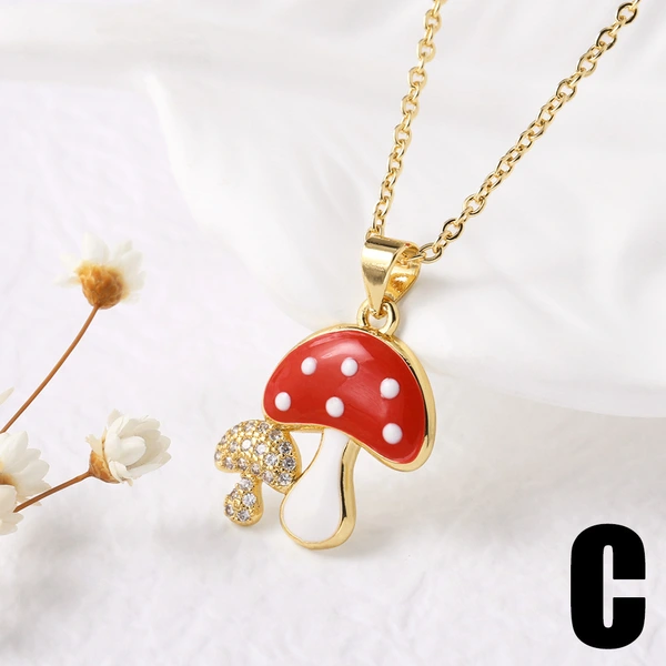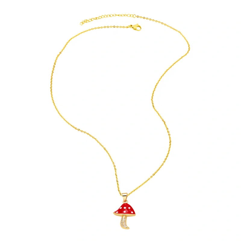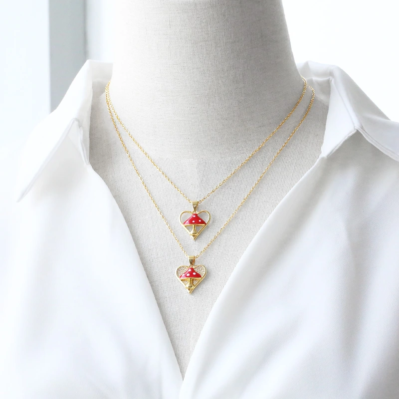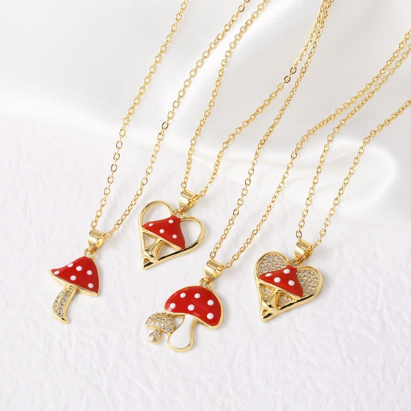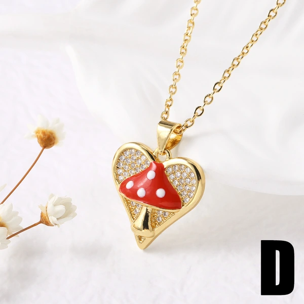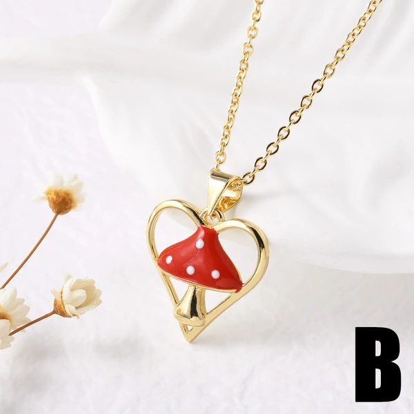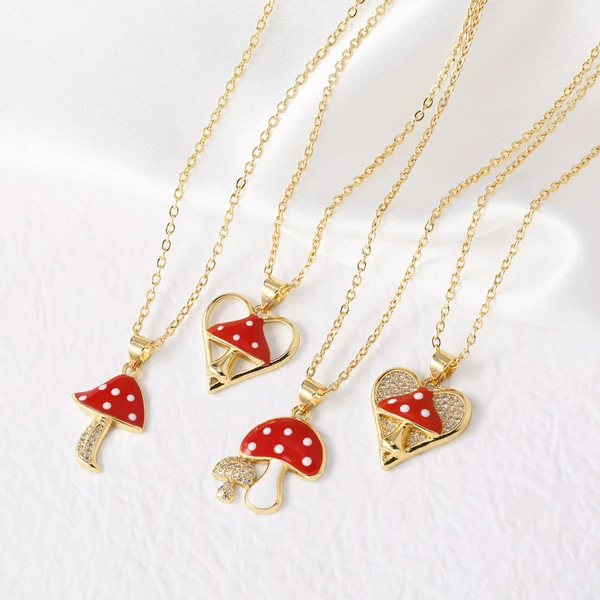 como joia mais vendida colar com pingente de coração banhado a ouro gota de óleo cogumelo corrente de clavícula nkp29