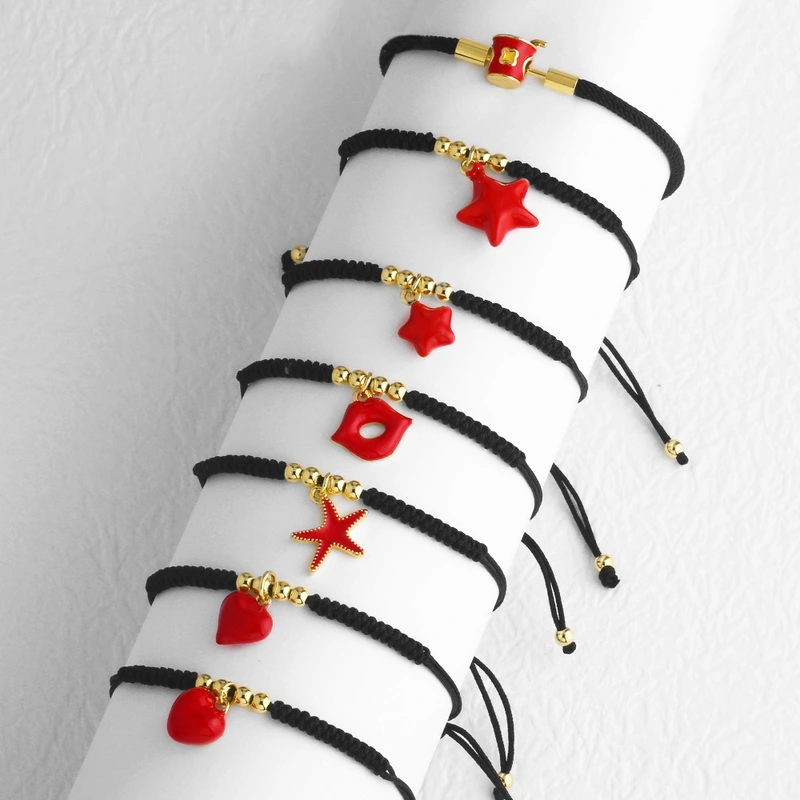 como joia mais vendida, pulseira com pingente de estrela ajustável de corda preta tecida à mão brd26