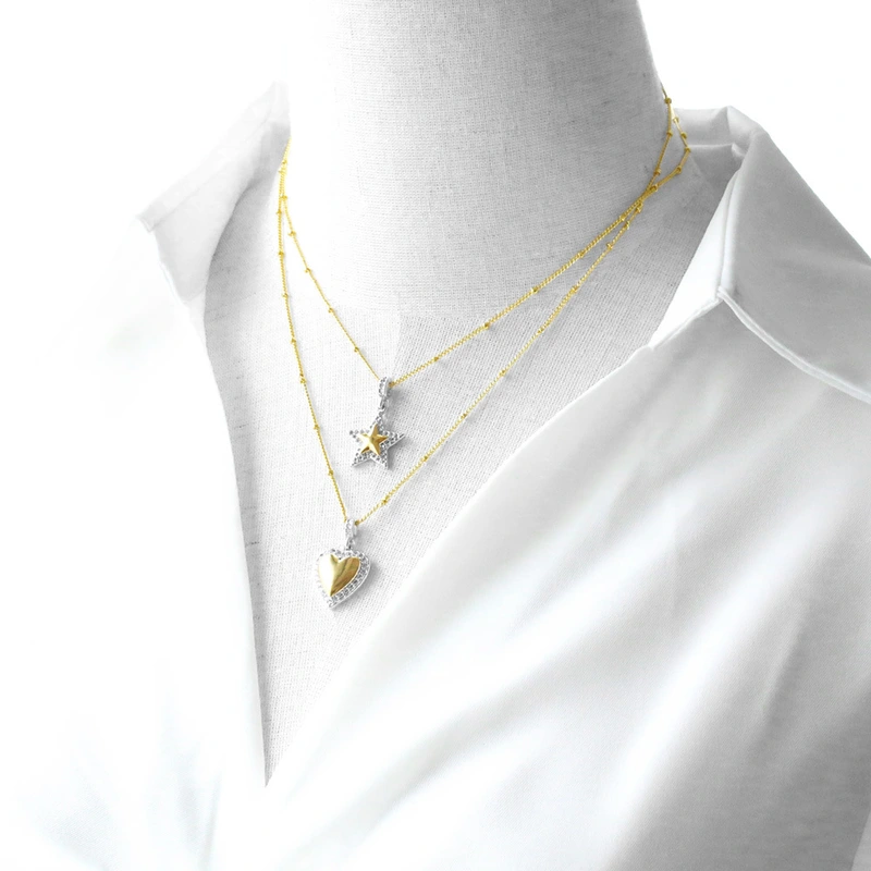 Colar de joias de amor mais vendido na Europa e na América, pendente em forma de coração de camada dupla da moda, colar de boa irmã