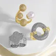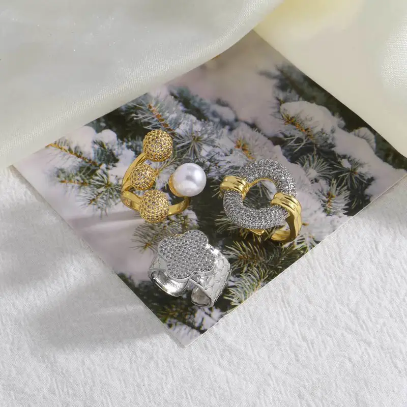como joia pérola trevo de quatro folhas anel aberto feminino cheio de zircônia cobre banhado a ouro 18k anel rir12