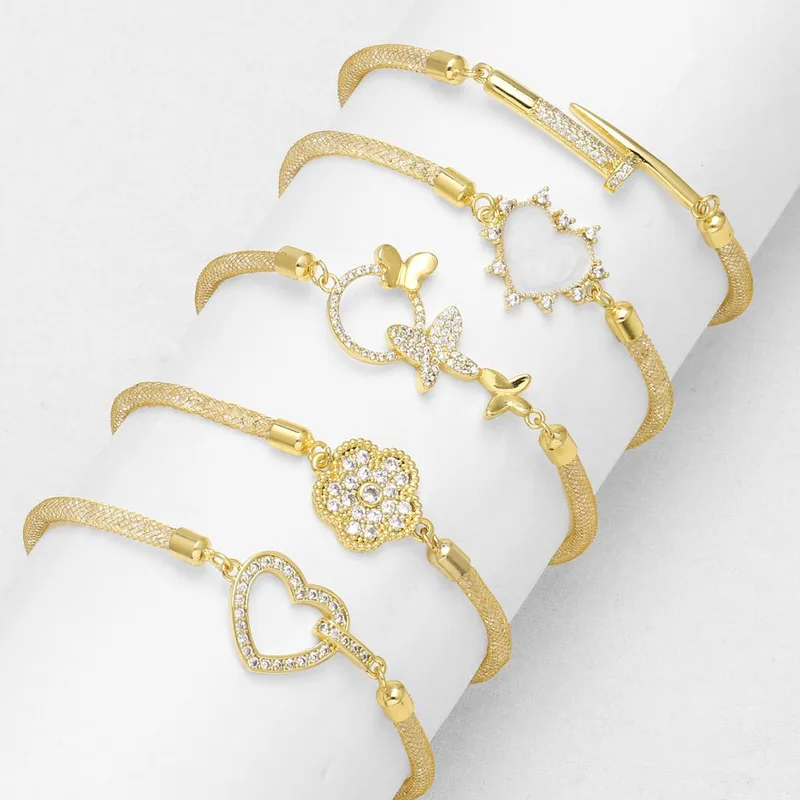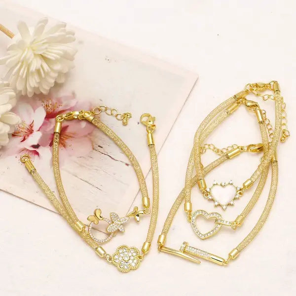 como joias amor flor pulseira feminina banhada a ouro borboleta diamante joias de mão brk02 pulseira