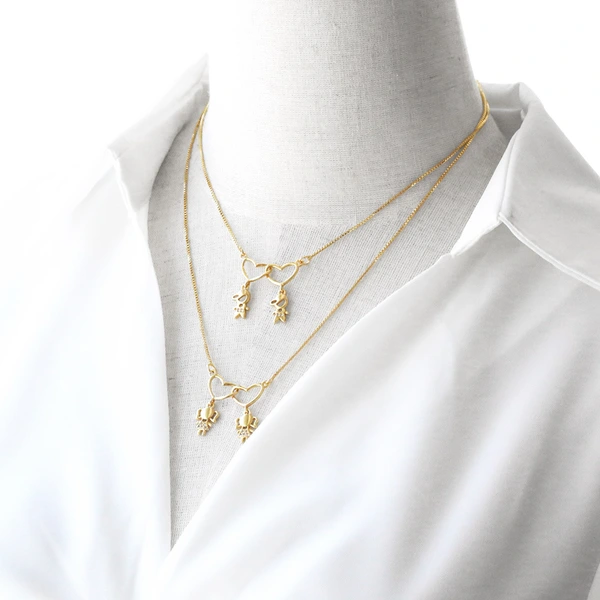 Colar de joias de amor mais vendido na Europa e na América, pendente em forma de coração de camada dupla da moda, colar de boa irmã