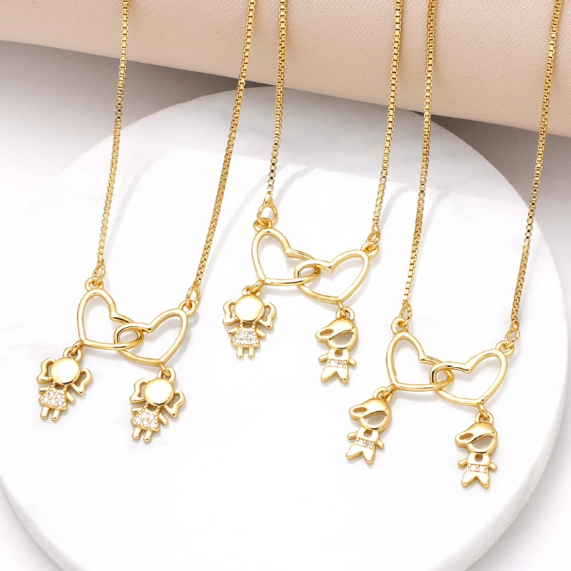como joias amor menina menino pingente colar banhado a ouro zircão corrente clavícula nkb561