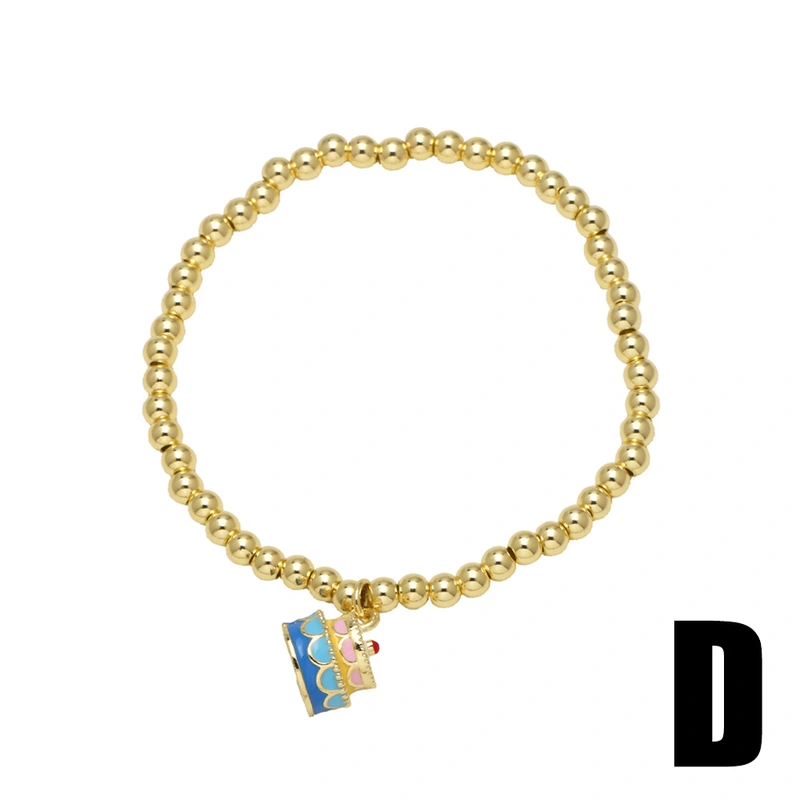 Pulseira feminina com 26 letras em inglês, contas de cobre europeias e americanas, pulseira elástica de pérolas, pulseira fashion com letras de coroa brf80