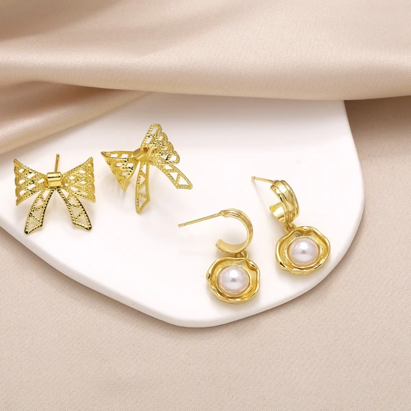 como joias brincos brincos de arco brincos de pérolas de zircônia banhados a ouro brincos erz49
