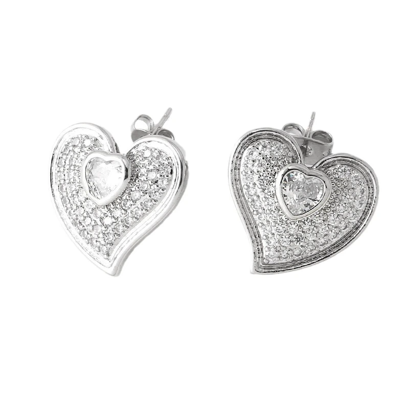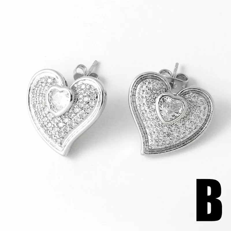 Brincos de alta qualidade para serviços pesados, totalmente incrustados, luxuosos brincos de coração em forma de C, brincos de moda europeus e americanos