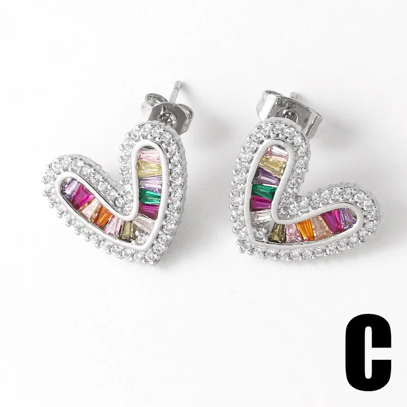 como joias brincos de amor europeus e americanos para mulheres incrustados com fivelas de orelha de zircônia colorida brincos em forma de coração banhados a ouro era355