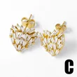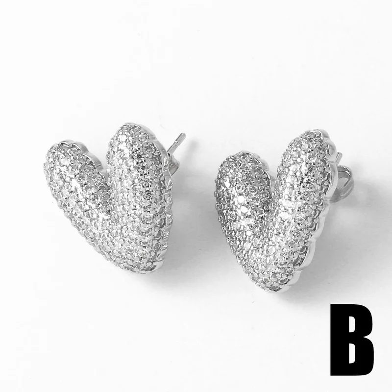 Brincos de alta qualidade para serviços pesados, totalmente incrustados, luxuosos brincos de coração em forma de C, brincos de moda europeus e americanos