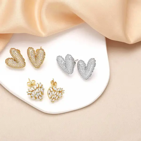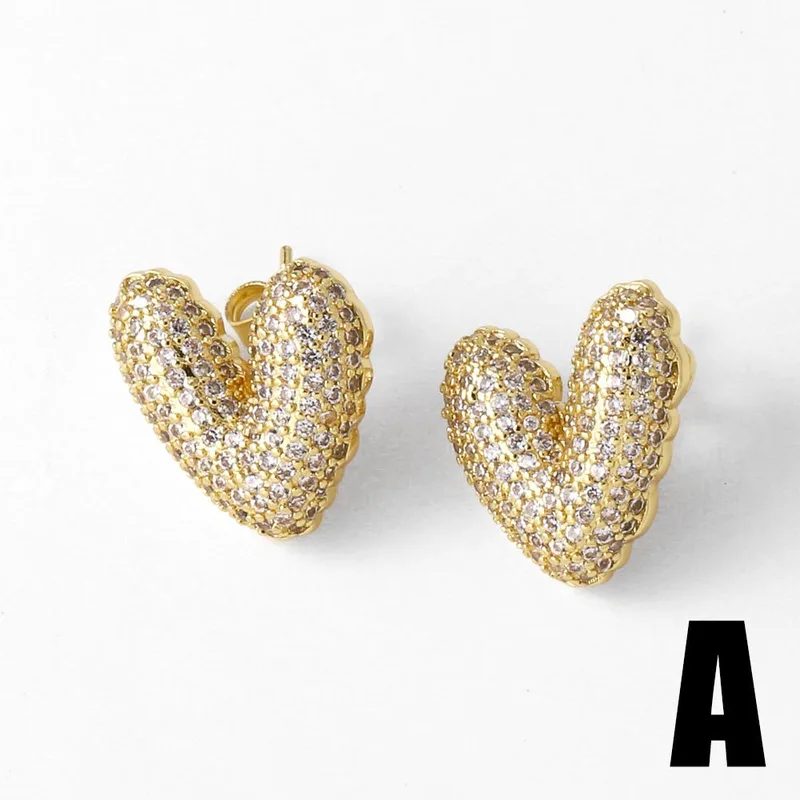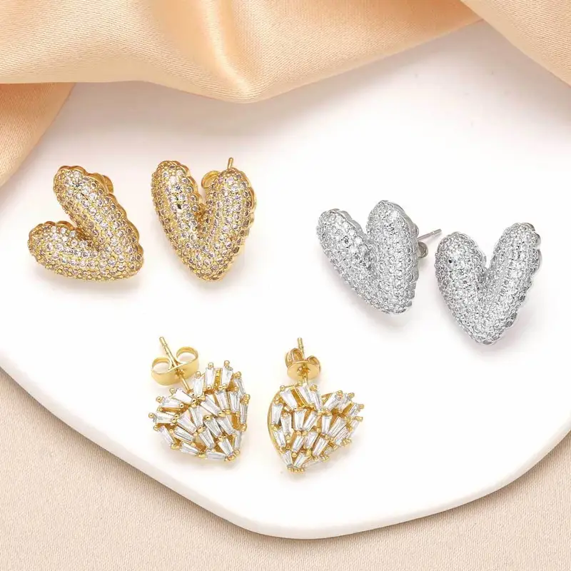 como joias brincos de coração femininos banhados a cobre ouro 18k incrustados com zircônia brincos em forma de coração era325