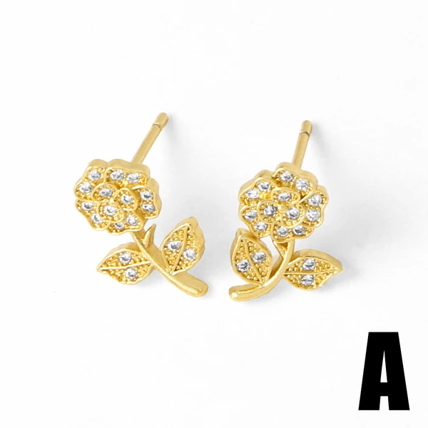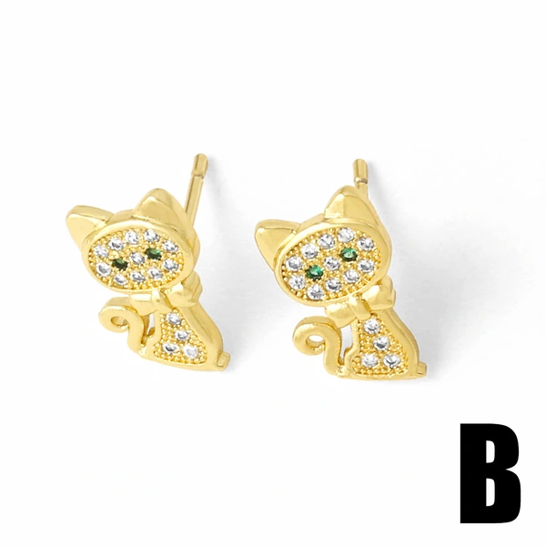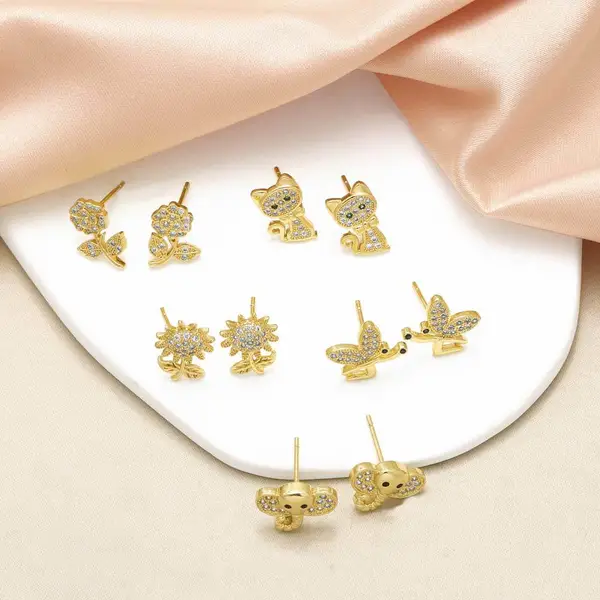como joias brincos de gatinho elefante animal brincos de flor de zircônia banhados a ouro era358