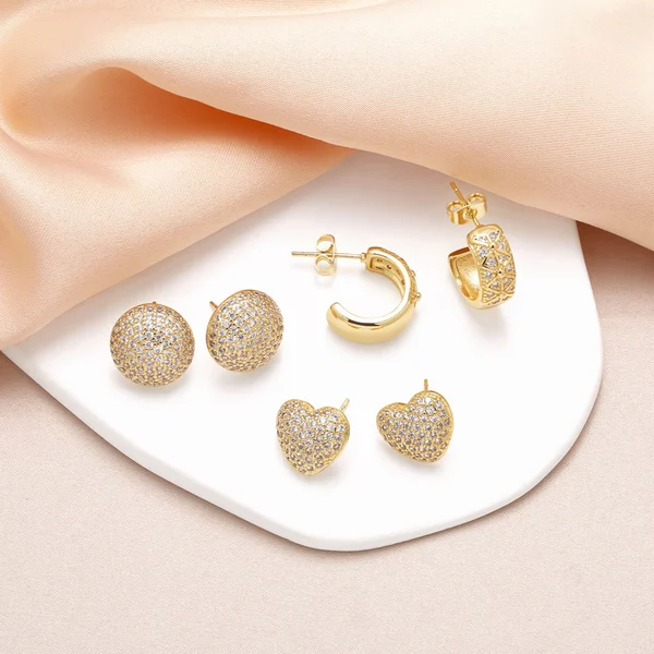 como joias brincos europeus e americanos em forma de coração brincos cheios de zircônia banhados a cobre brincos redondos de ouro verdadeiro acessórios femininos era360