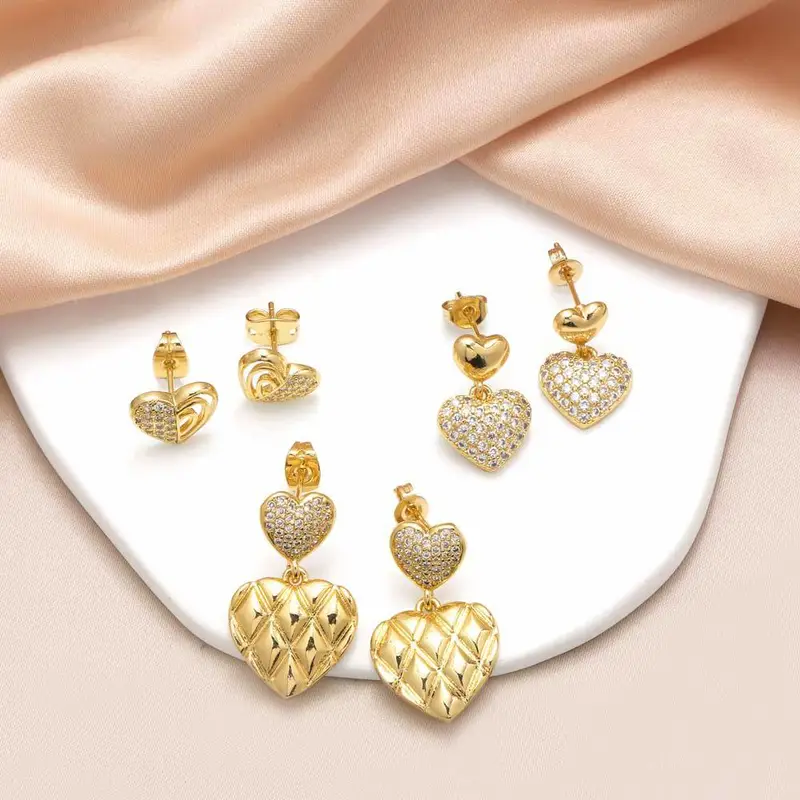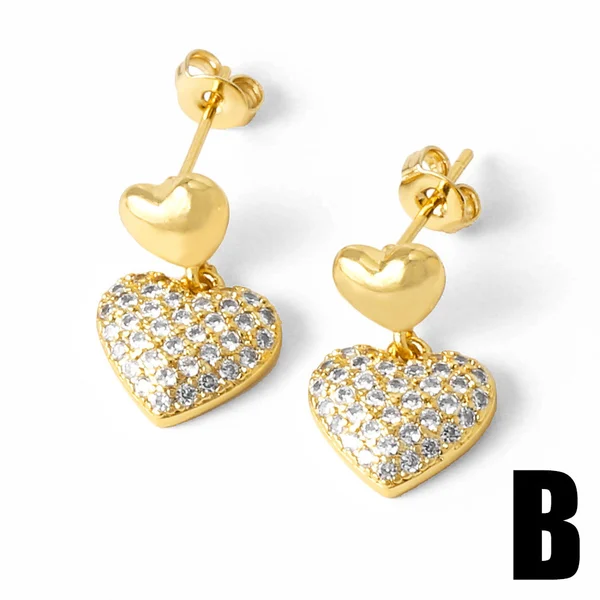 como joias brincos pingentes de coração de amor europeus e americanos brincos femininos banhados a ouro brincos em forma de coração de zircônia erq66