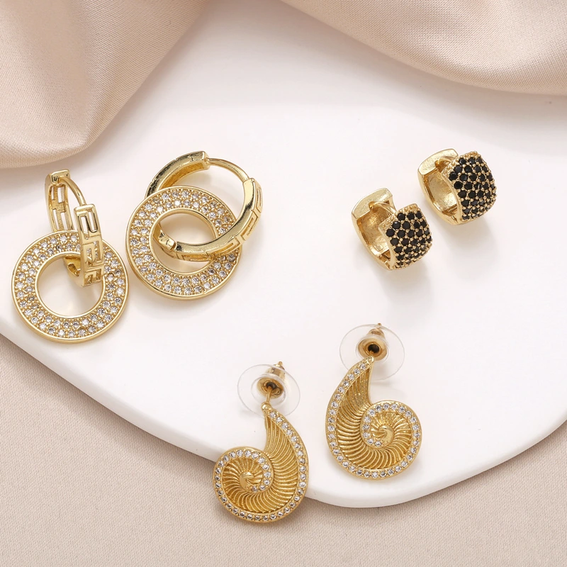 Brincos coreanos elegantes de temperamento antigo, misture e combine brincos ovais com microincrustações de zircónias brilhantes, vendas diretas da fábrica