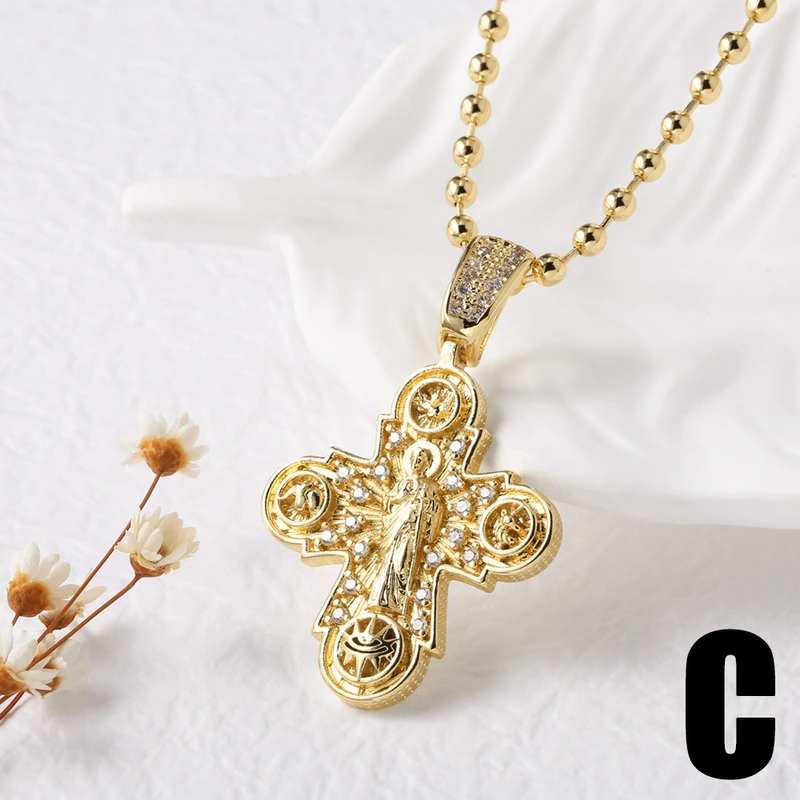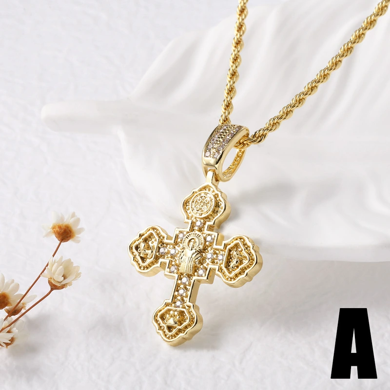 como joias colar com pingente de cruz madonna de zircônia cheia corrente de clavícula nkz05 colar