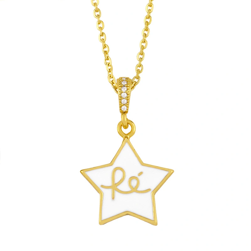 como joias estilo europeu e americano nicho design gota de óleo estrela de cinco pontas corrente de clavícula colar feminino letra fe corrente de suéter nks42