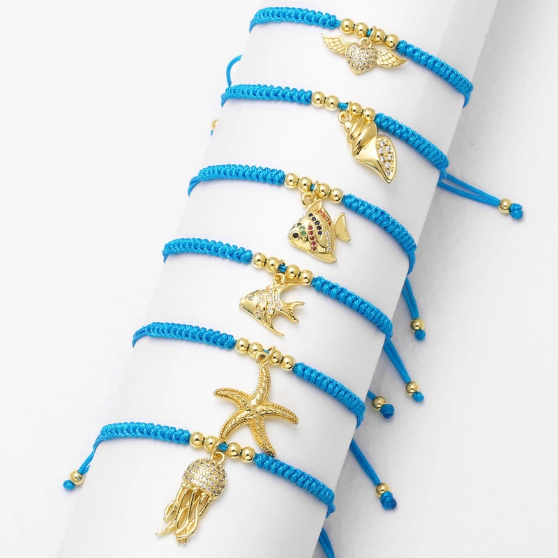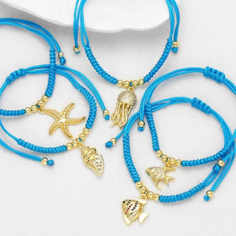 como joias estilo europeu e americano oceano estrela do mar pingente de peixe pulseira trançada pulseira brk34 pulseira