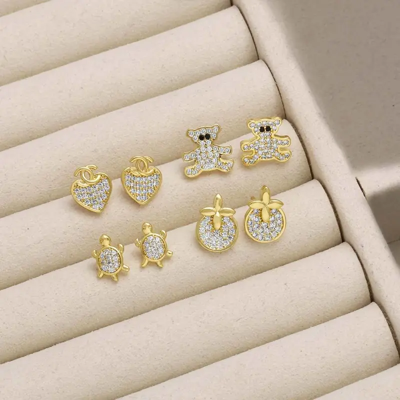 como joias estilo europeu e americano quente cheio de zircônia urso tartaruga brincos banhados a ouro brincos de amor brincos femininos era252