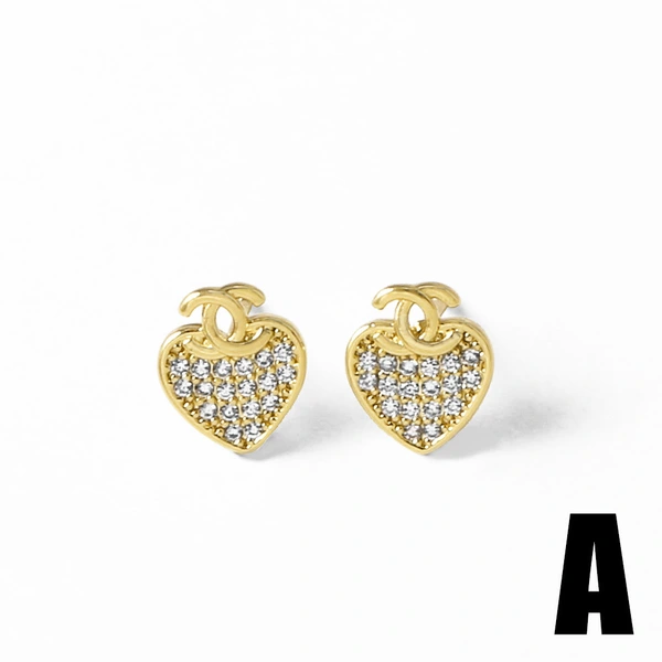 Brincos de alta qualidade para serviços pesados, totalmente incrustados, luxuosos brincos de coração em forma de C, brincos de moda europeus e americanos