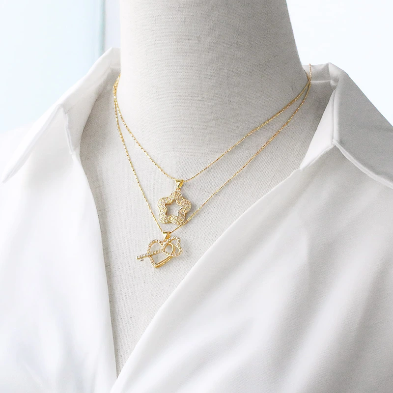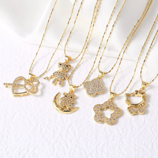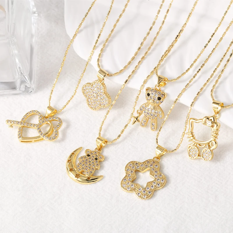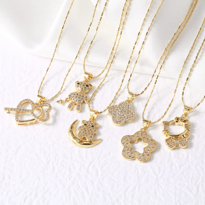 como joias estilo europeu e americano quente kt gato urso colar feminino banhado a ouro coração estrela colar corrente de clavícula nkt21