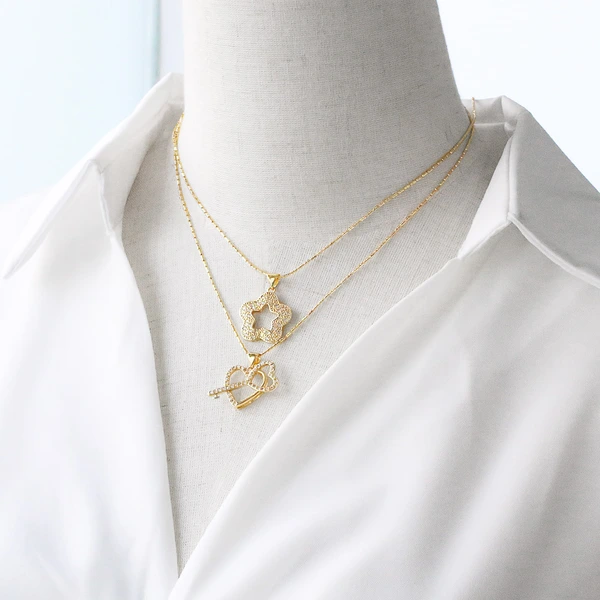 Colar de joias de amor mais vendido na Europa e na América, pendente em forma de coração de camada dupla da moda, colar de boa irmã