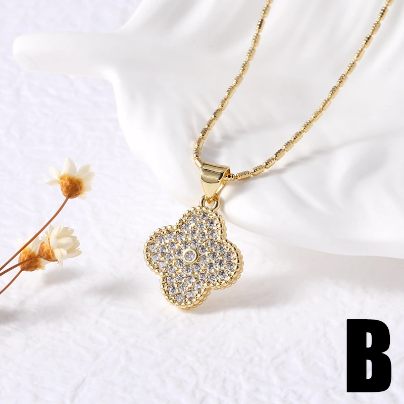 Corrente de clavícula com zircónia incrustada, pendente popular de trevo de quatro folhas, colar coreano de temperamento sofisticado para mulheres
