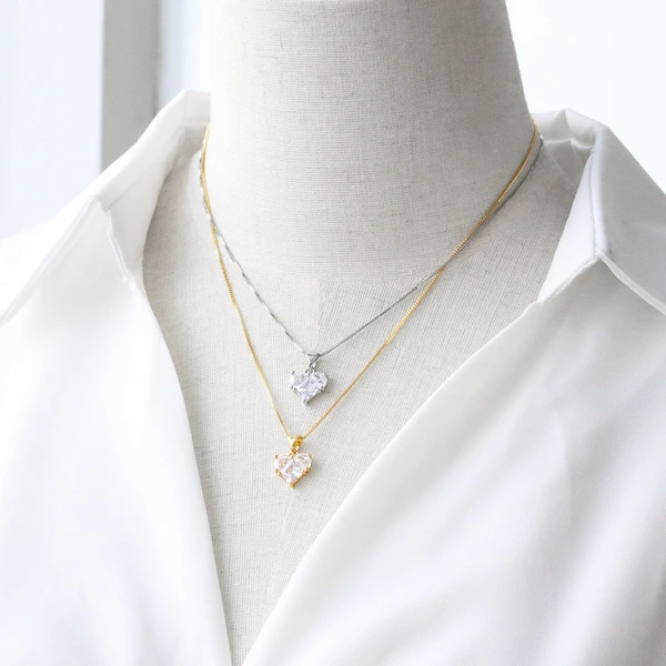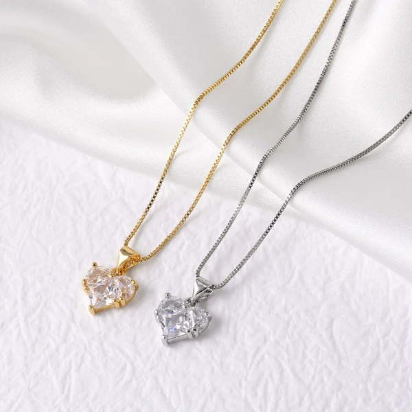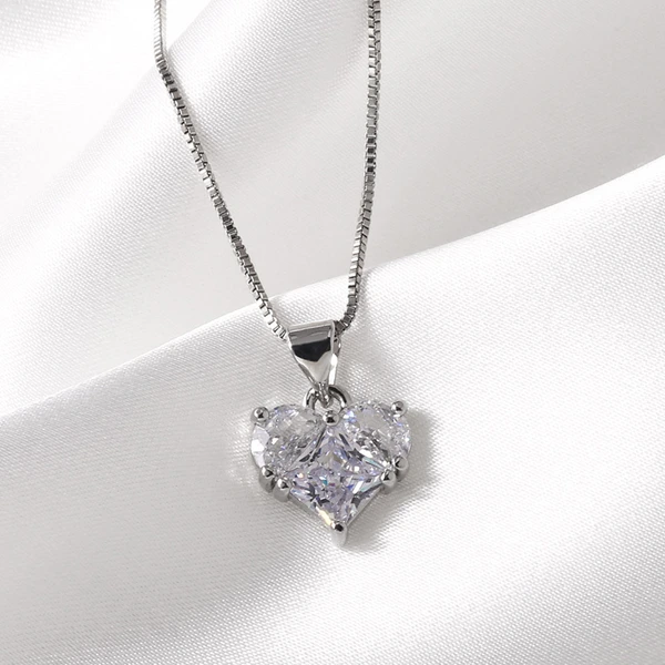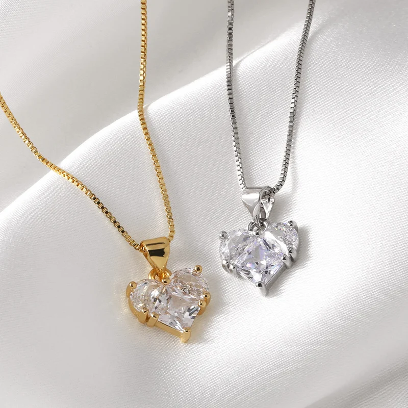 Colar estilo coreano com zircónias em forma de coração, presente romântico, pendente de confissão doce, corrente de clavícula de amor em forma de coração