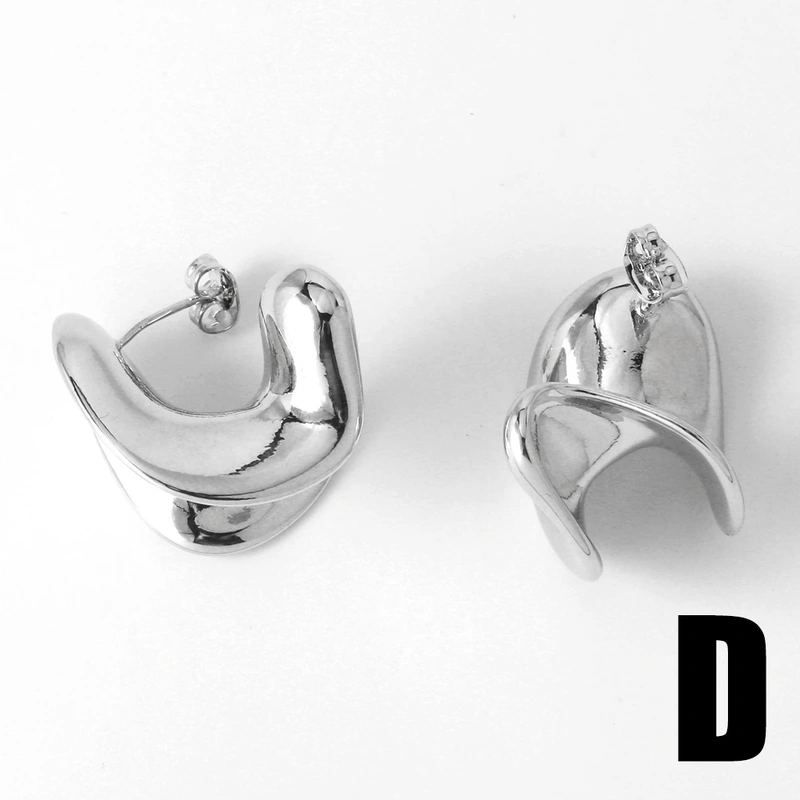 Brincos grandes em formato de C retro europeus e americanos, brincos de flores com ramos de metal, temperamento retro, orelha de bordo bicolor