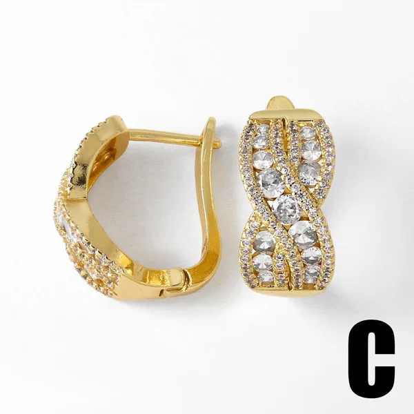Brincos de alta qualidade para serviços pesados, totalmente incrustados, luxuosos brincos de coração em forma de C, brincos de moda europeus e americanos