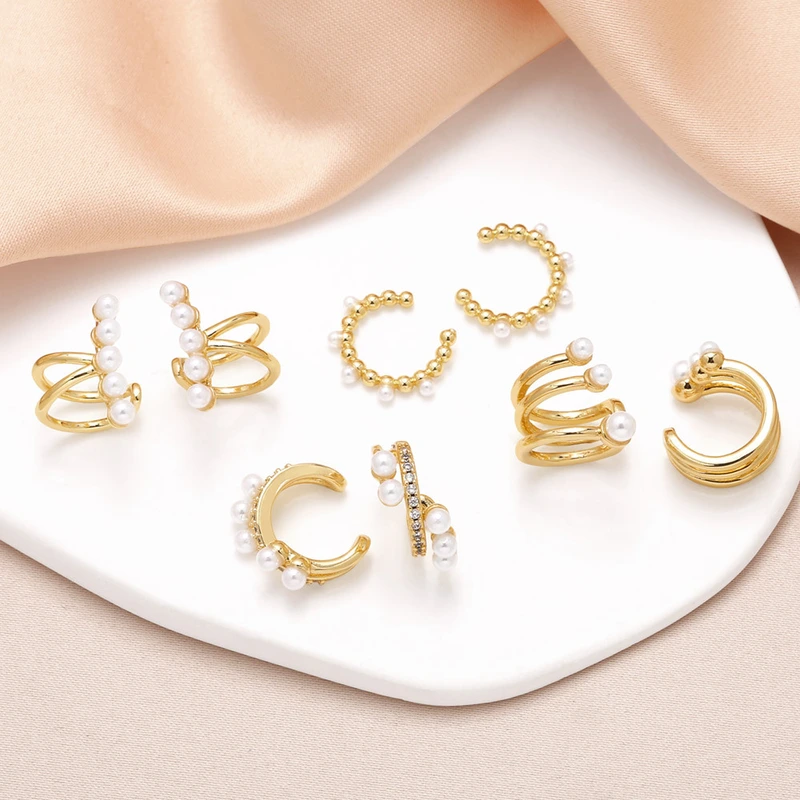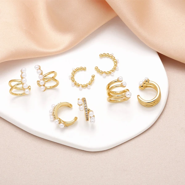 como joias europa e estados unidos brincos de pérola mais vendidos brincos de clipe de osso de orelha de zircônia banhados a ouro lisos femininos era374