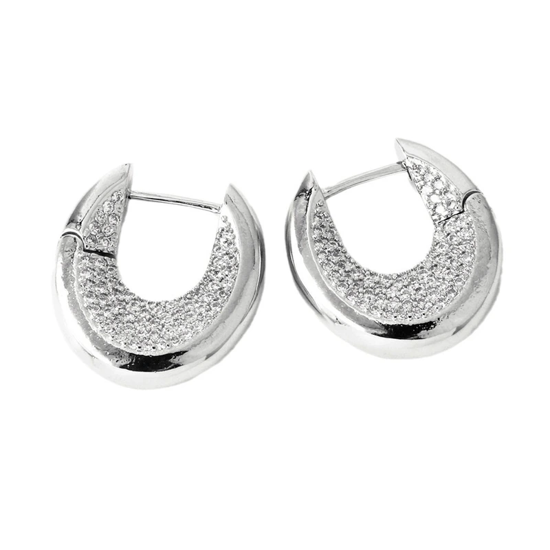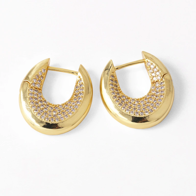 Brincos de alta qualidade para serviços pesados, totalmente incrustados, luxuosos brincos de coração em forma de C, brincos de moda europeus e americanos