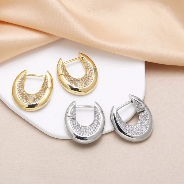 Brincos coreanos elegantes de temperamento antigo, misture e combine brincos ovais com microincrustações de zircónias brilhantes, vendas diretas da fábrica