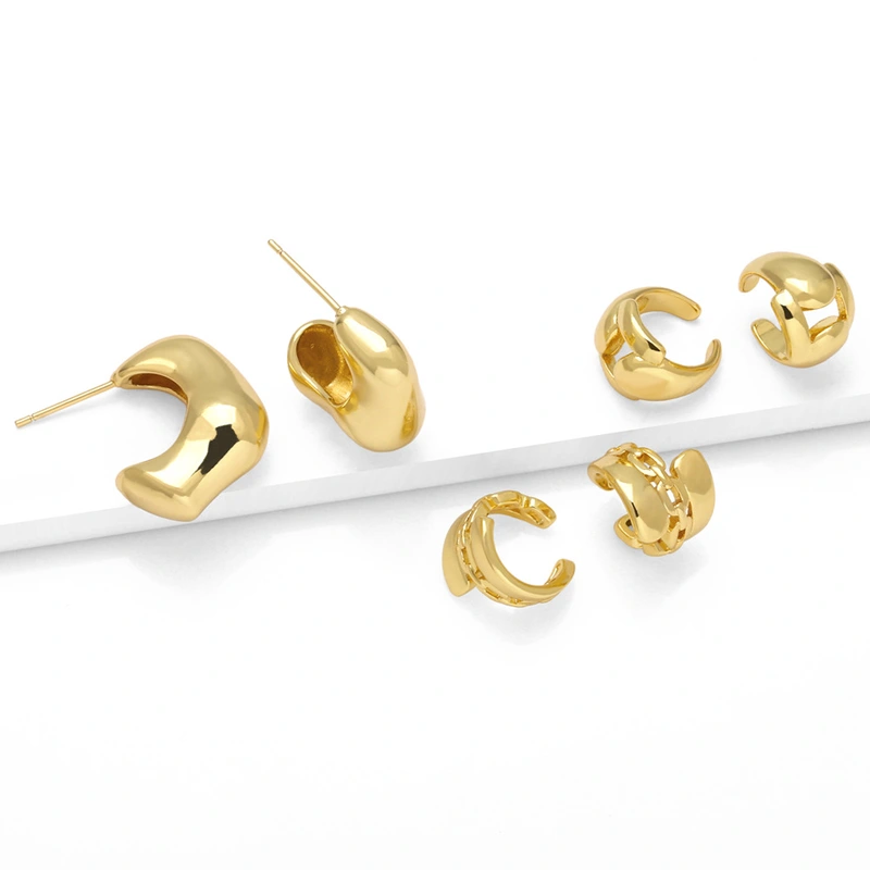 como joias europa e estados unidos brincos lisos mais vendidos feminino nicho brincos de ouro 18k banhados a cobre de alta qualidade eru11