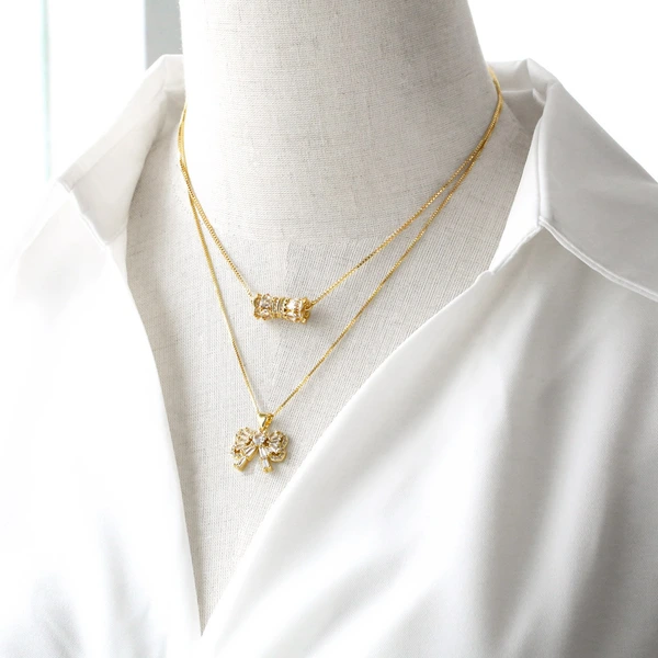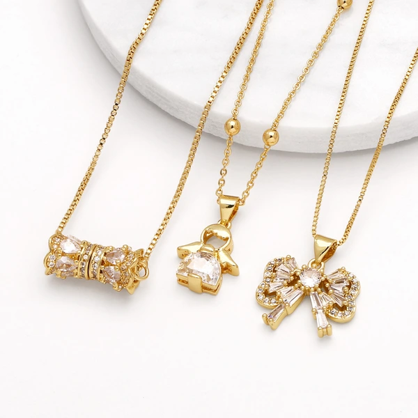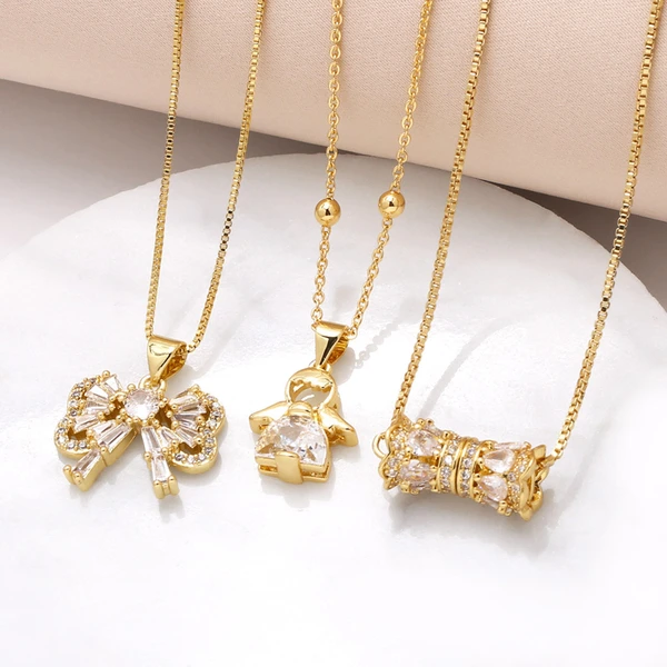como joias europa e estados unidos mais vendidas colar com pingente de arco feminino com zircônias banhadas a ouro corrente de clavícula de anjo nkb013