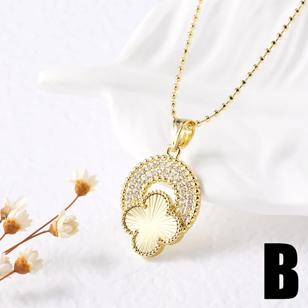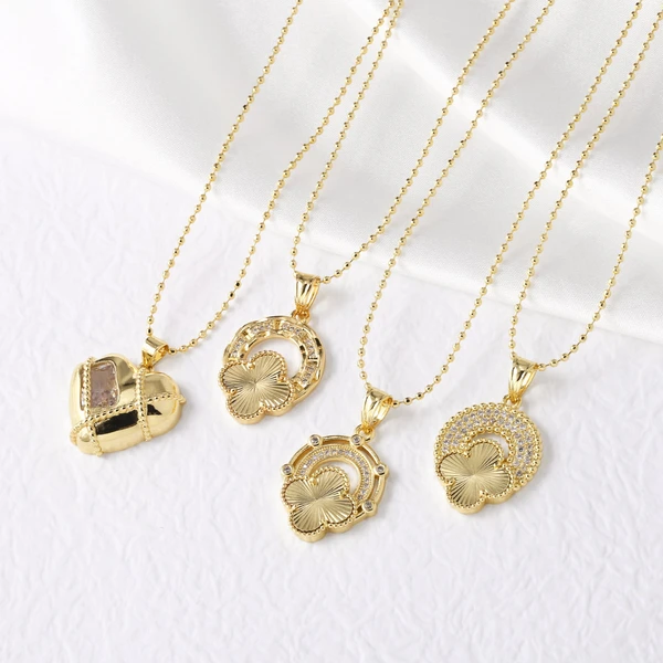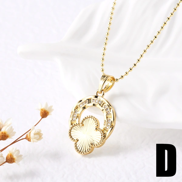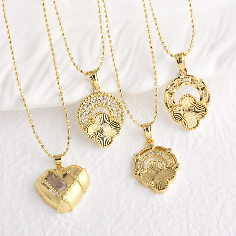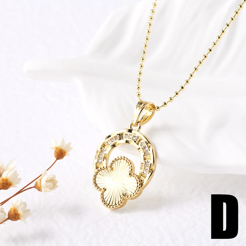 Corrente de clavícula com zircónia incrustada, pendente popular de trevo de quatro folhas, colar coreano de temperamento sofisticado para mulheres