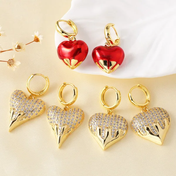 como joias europa e estados unidos mais vendidos brincos em formato de coração de amor banhados a cobre com zircônia brincos femininos eru37