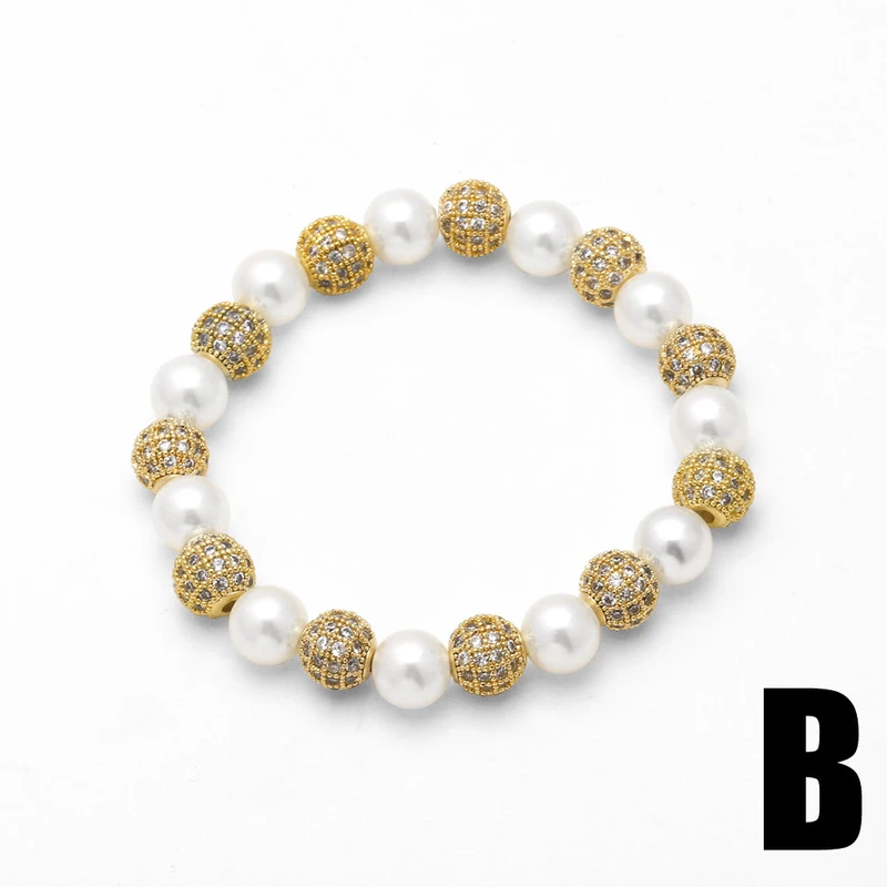 Pulseira feminina com 26 letras em inglês, contas de cobre europeias e americanas, pulseira elástica de pérolas, pulseira fashion com letras de coroa brf80