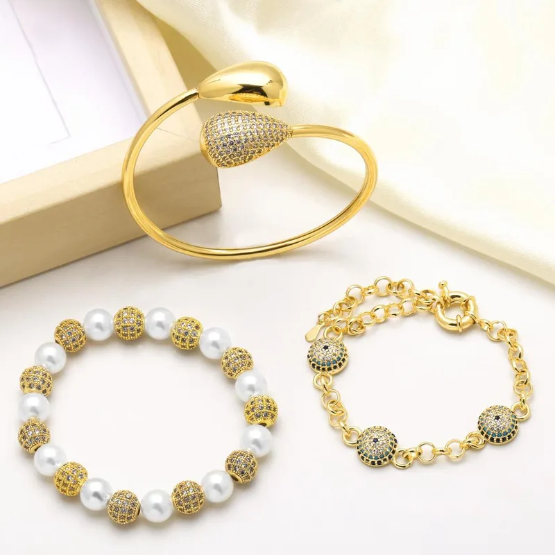 como joias europa e estados unidos pulseira de pérolas mais vendida da moda pulseira de olho de zircônia incrustada banhada a ouro pulseira brj71