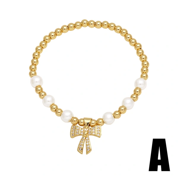 Pulseira feminina com 26 letras em inglês, contas de cobre europeias e americanas, pulseira elástica de pérolas, pulseira fashion com letras de coroa brf80